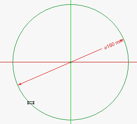 - 画圆 → 圆心约束 + 直径 160 mm